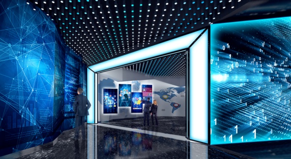 數字多媒體展廳,如同一個綜合的展示殿堂,集結各類多媒體展示系統,猶如一座科技寶庫,蘊含著無限的新奇和神秘。為了提升展廳的趣味、互動性和觀賞性,大膽采用最新科技設備和互動裝置成為必然之舉。虛擬展廳、弧幕影院、迎賓禮儀地幕系統軟件、活動平臺、互動交流鏡面玻璃以及觸摸顯示屏等新科技裝備相互融合,塑造出一個充滿藝術和科技碰撞的未來空間。