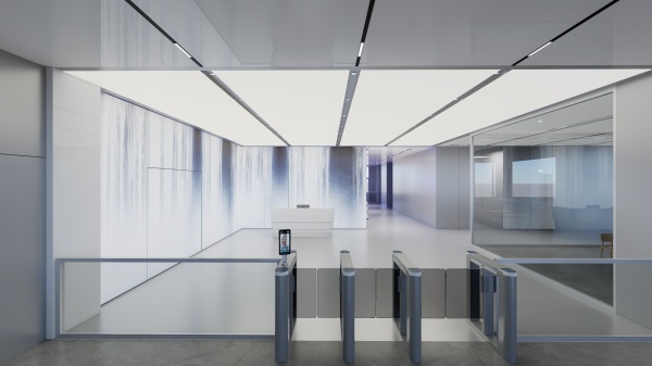 整個展廳以簡潔、大氣的現代設計風格為主,結合流暢的線條與科技感的元素,營造出一個充滿未來感與專業性的展示空間。